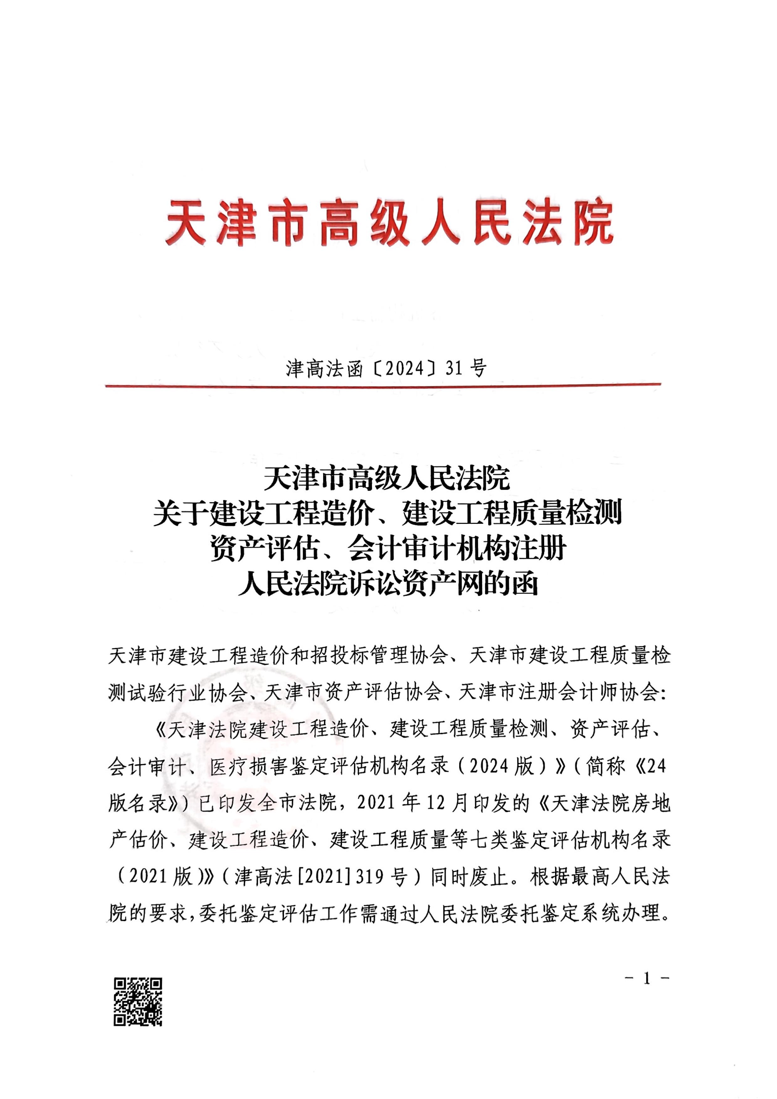 2024年天津法院建設(shè)工程造價、建設(shè)工程質(zhì)量、資產(chǎn)評估、會計審計、醫(yī)療損害鑒定評估機構(gòu)名錄