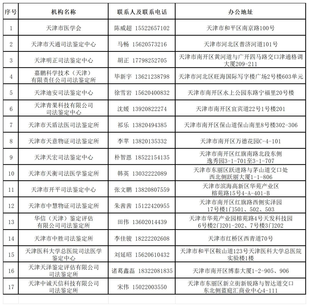 5.天津法院醫(yī)療損害類鑒定評估機構(gòu)名錄