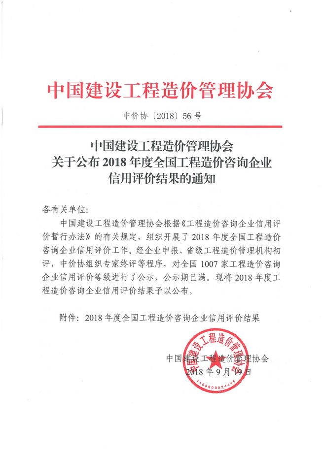 公司榮獲工程造價咨詢企業信用評價AAA-級