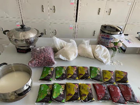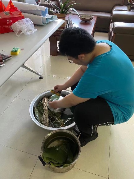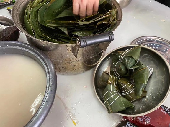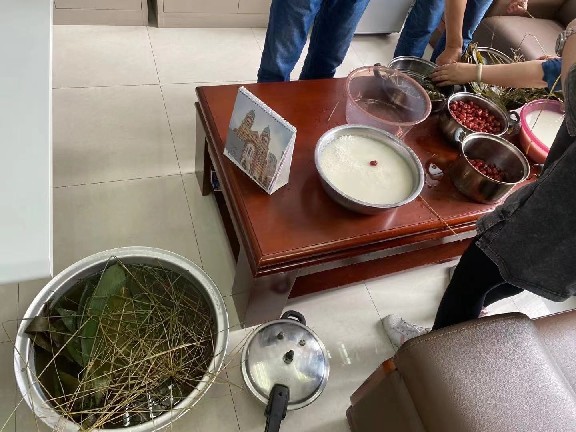 2021年6月11日早晨,許多員工就開(kāi)始忙碌起來(lái),從家里帶來(lái)電磁爐、煮鍋等炊具;事前泡好相應(yīng)數(shù)量的糯米、準(zhǔn)備好餡的配料及包扎的柴繩、粽葉,比賽結(jié)束后幫助煮熟粽子。